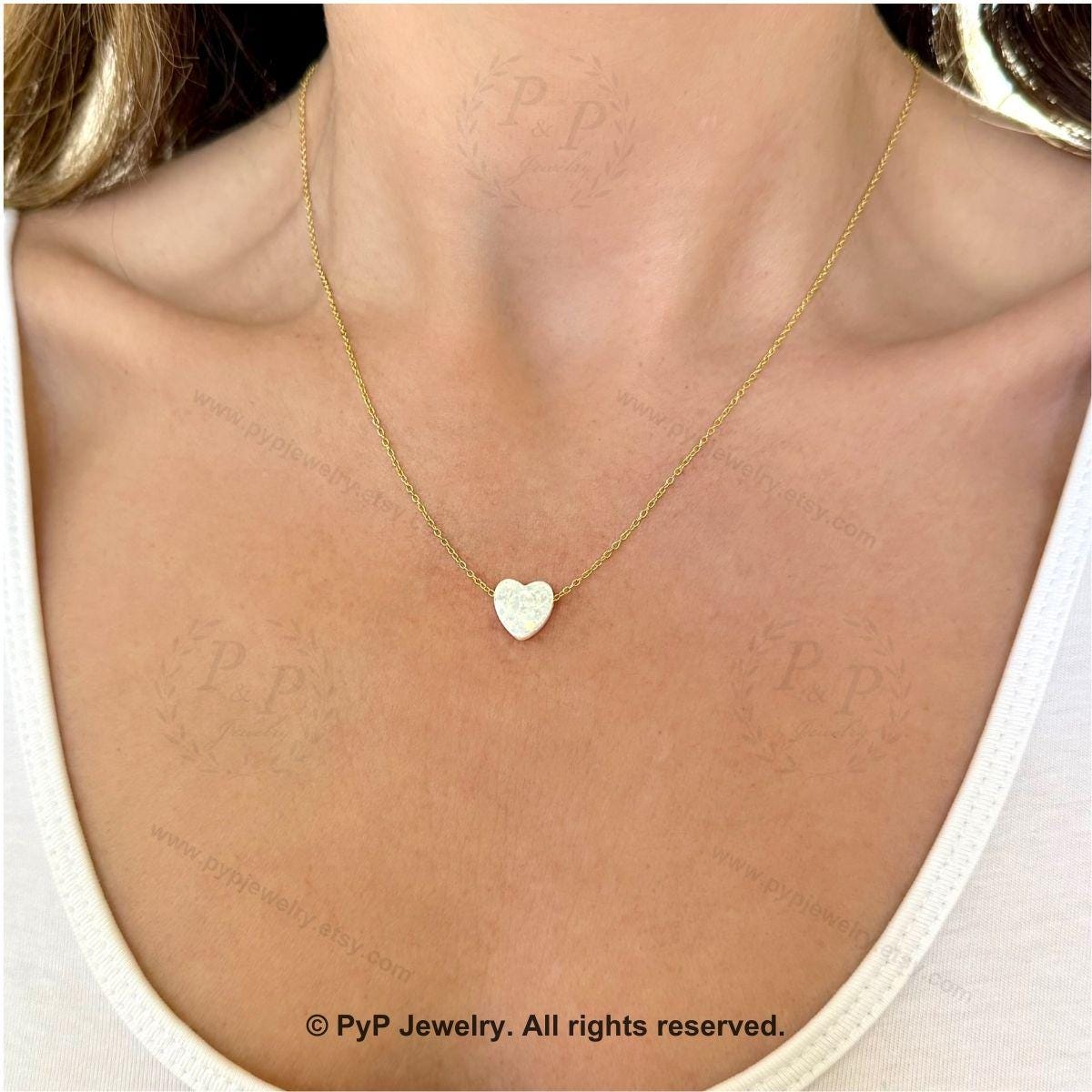 This opal heart necklace is a romantic and elegant piece that adds a soft, luminous touch to any jewelry collection. It can be worn alone as a delicate statement or layered with other necklaces for a refined and minimalist look.