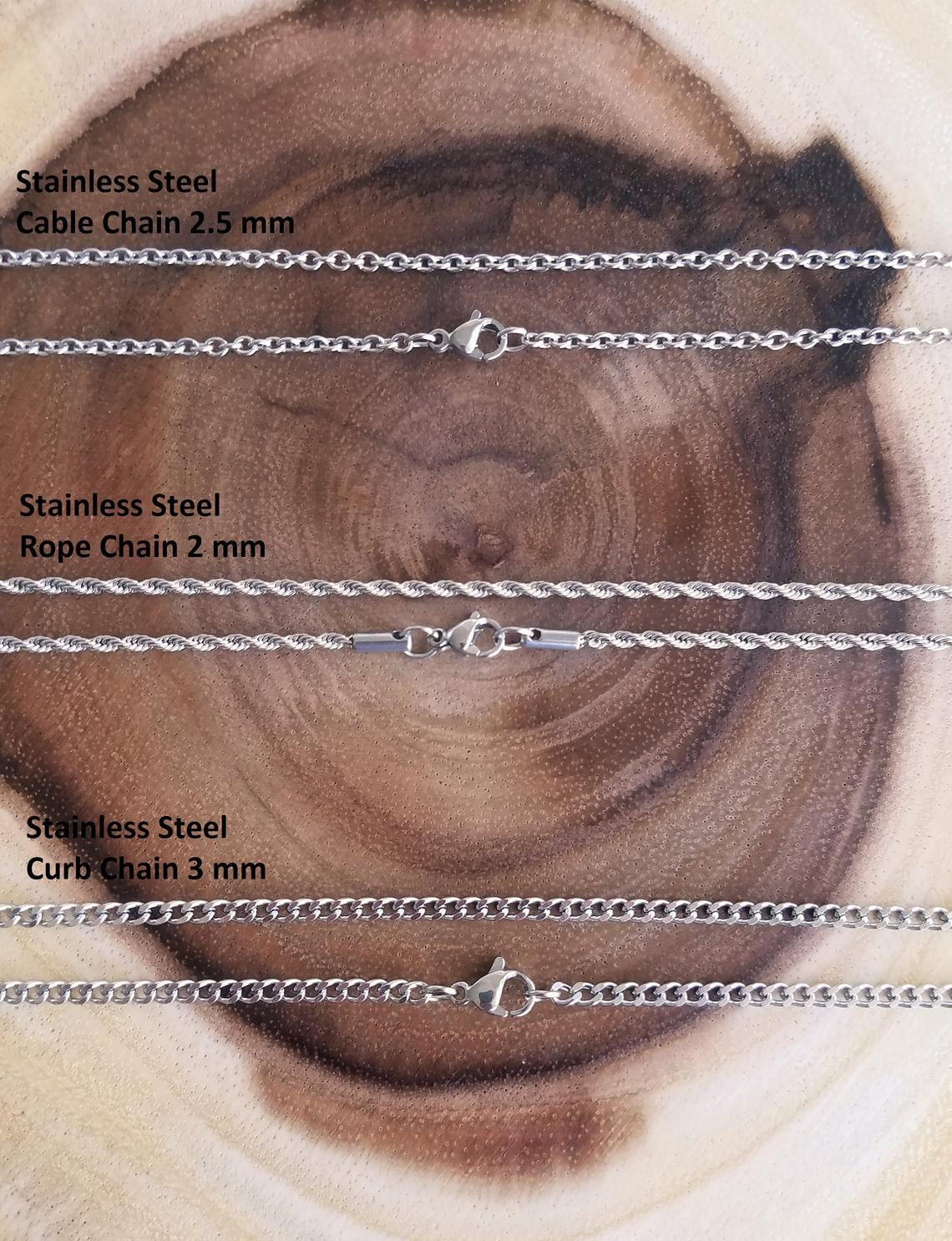 The pendant includes a High Quality Durable Stainless Steel 2 mm wide Rope Chain with Gold Plated of 24 Inches long.